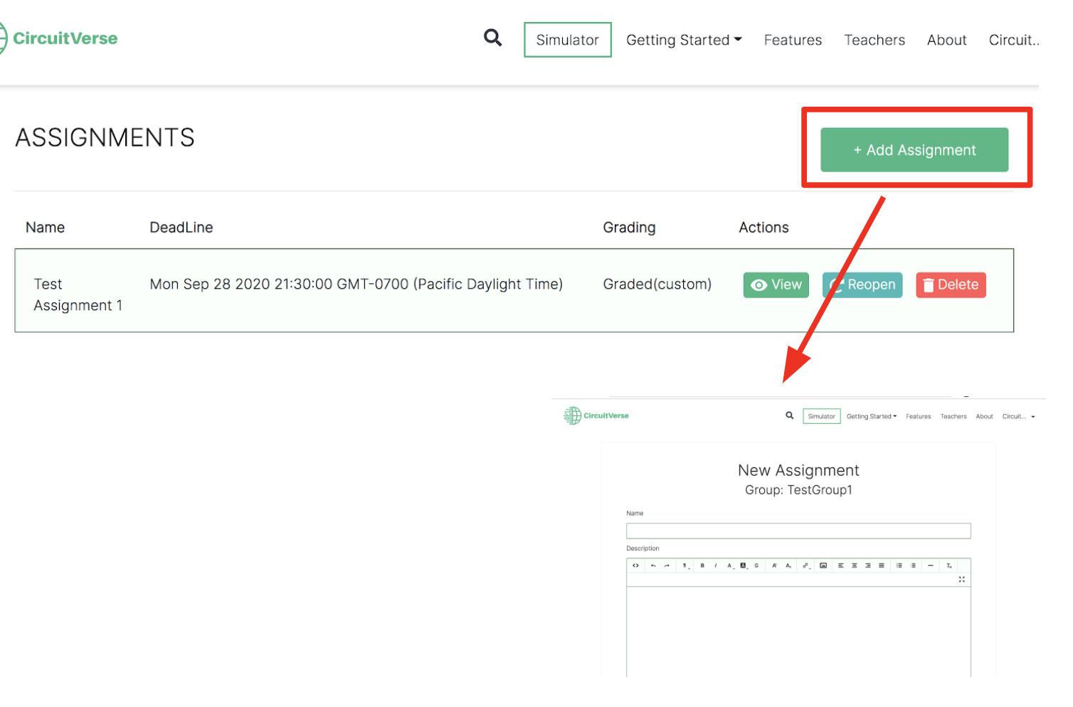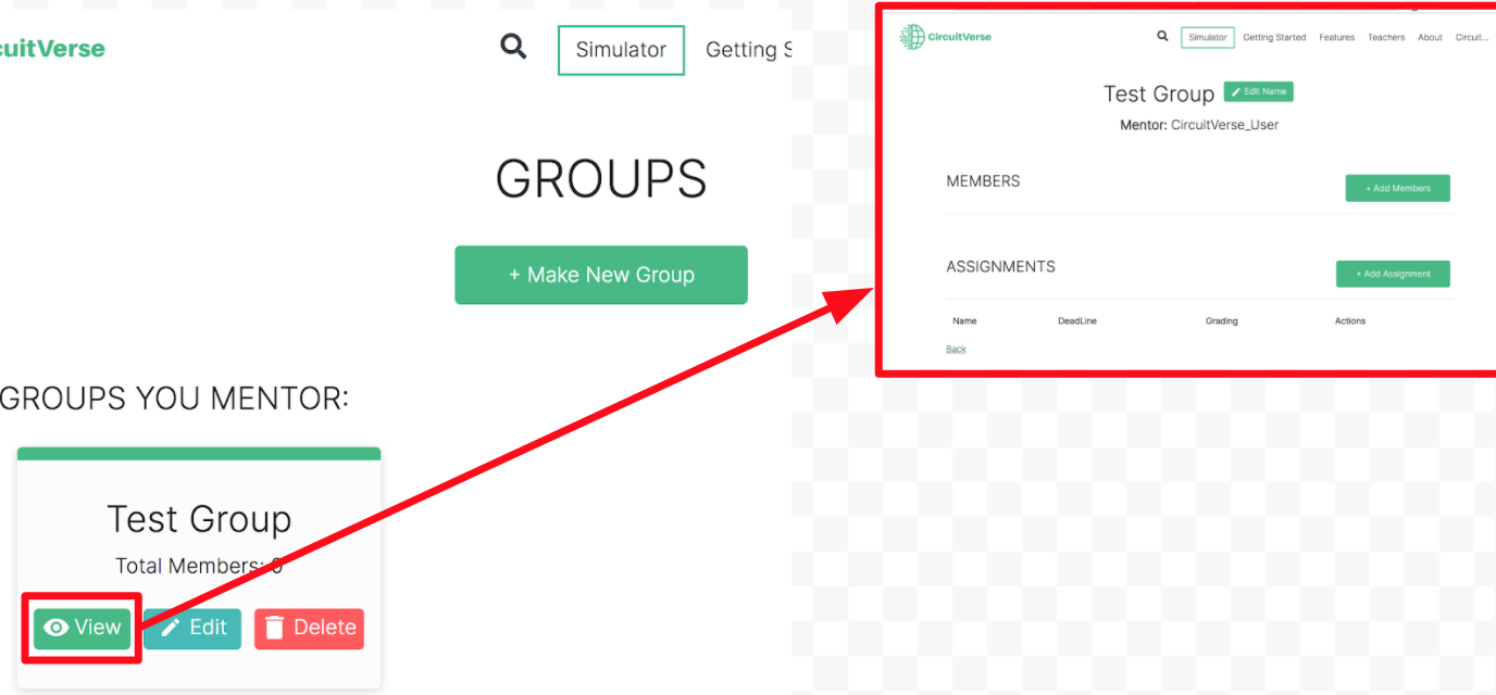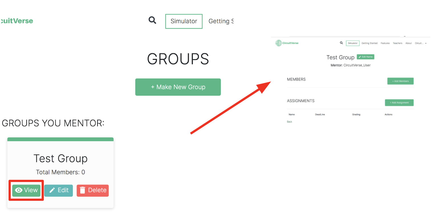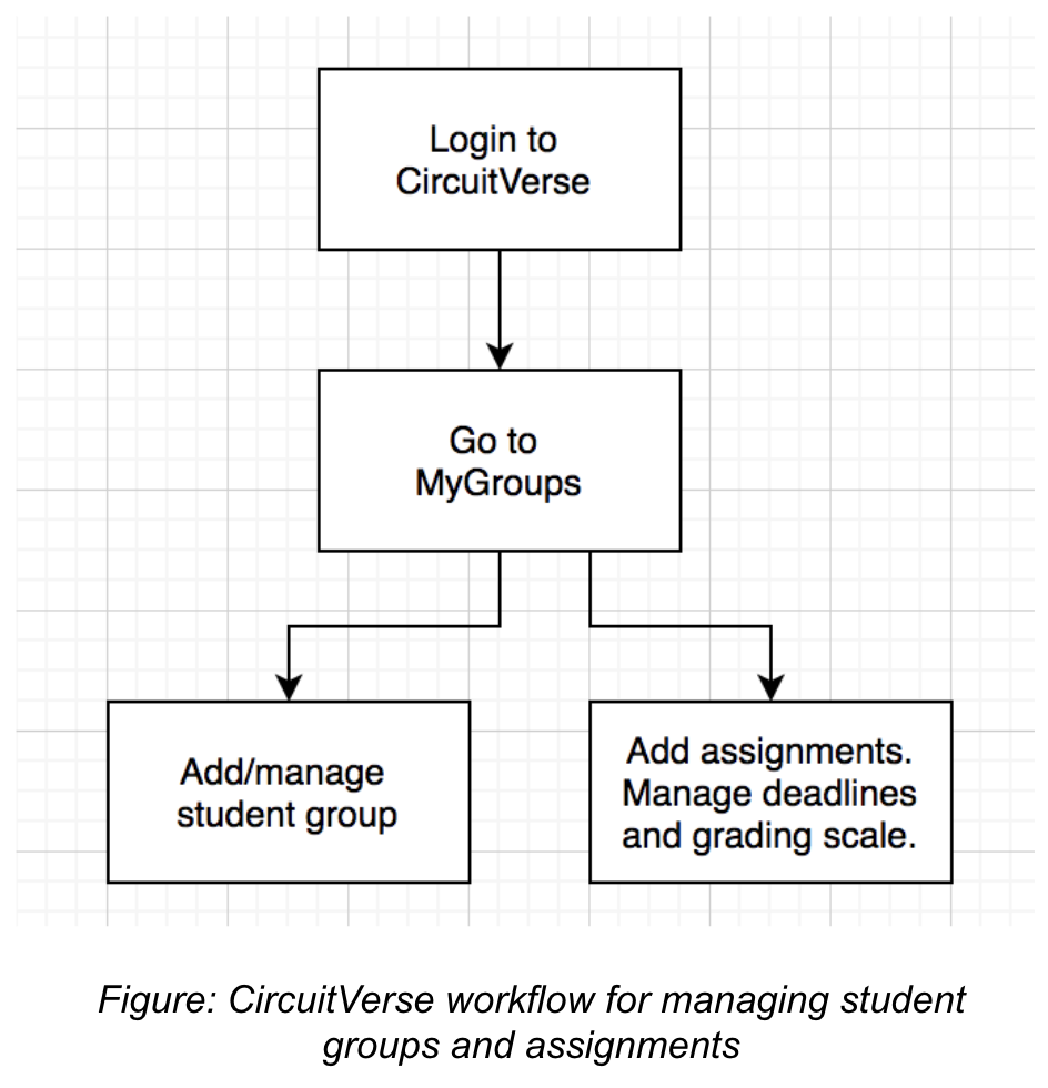 Figure 2.2: CircuitVerse workflow for managing student groups and assignments