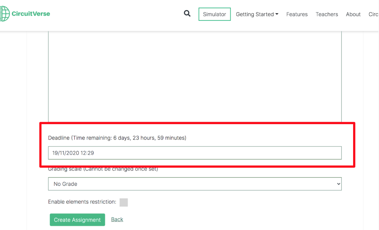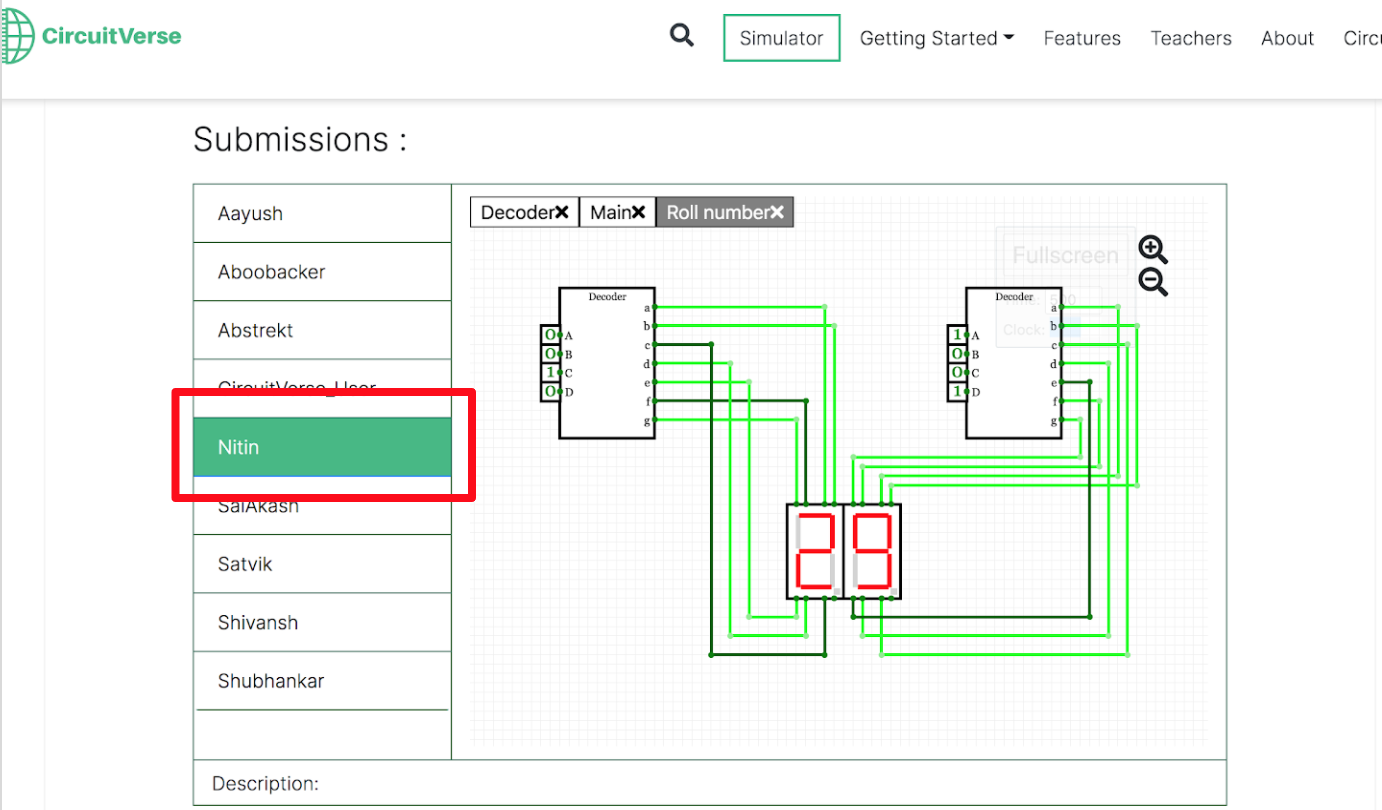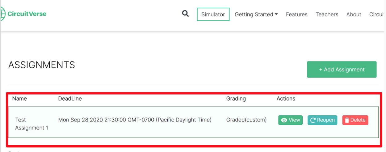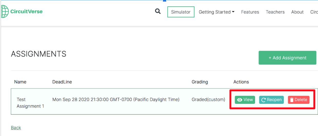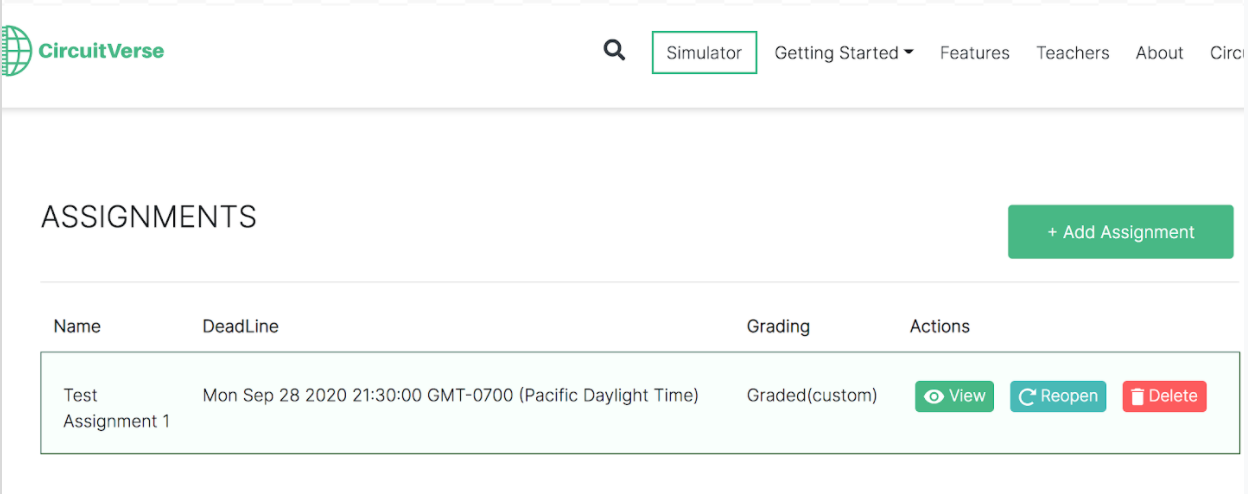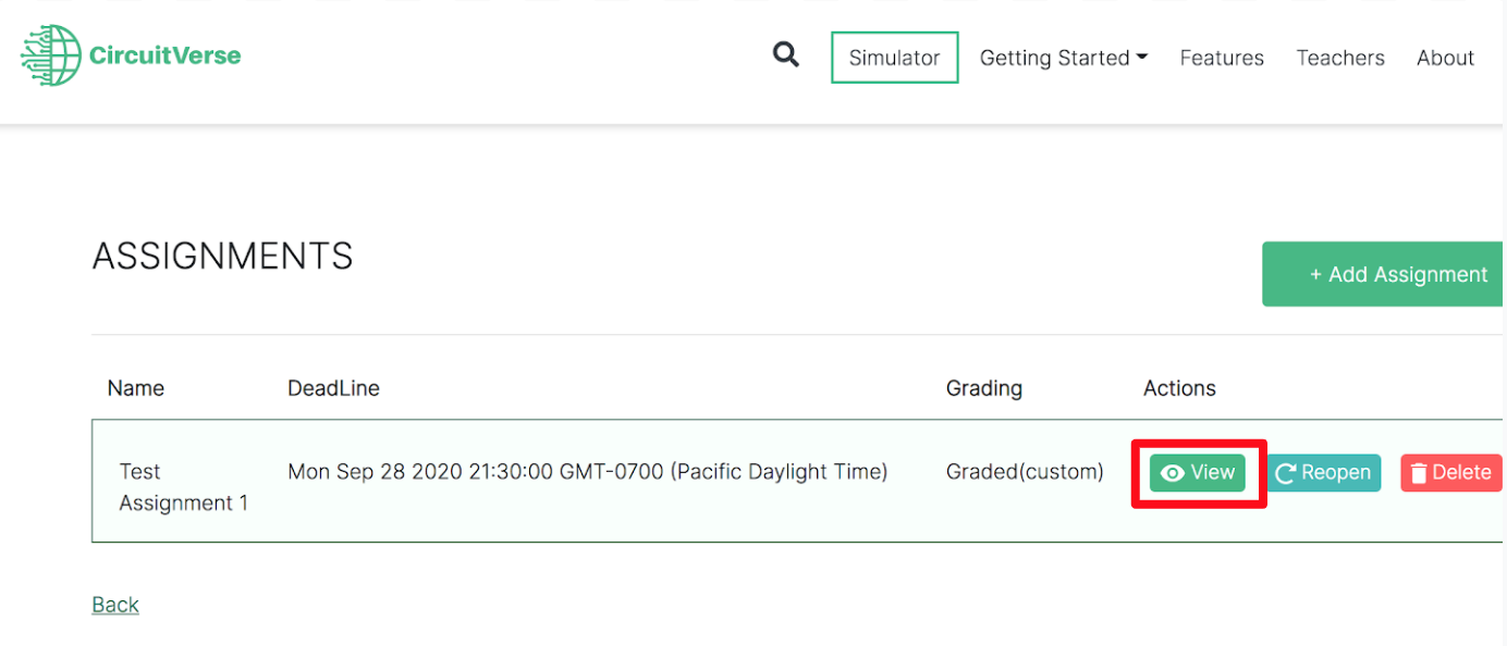After the grading scale has been set and the assignment deadline has passed, the grades can be added or updated. Follow the below steps to grade assignments within CircuitVerse.
