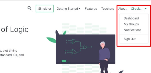 While understanding and learning the concepts of digital circuit design, students must learn through simulation of daily engineering tasks, including design verification and testing. This section highlights how educators can use the CircuitVerse tool as an educational tool for managing student groups, assignments, and grades in one place (refer to Figure 2.2). Some of the key workflows available within the CV tool include: