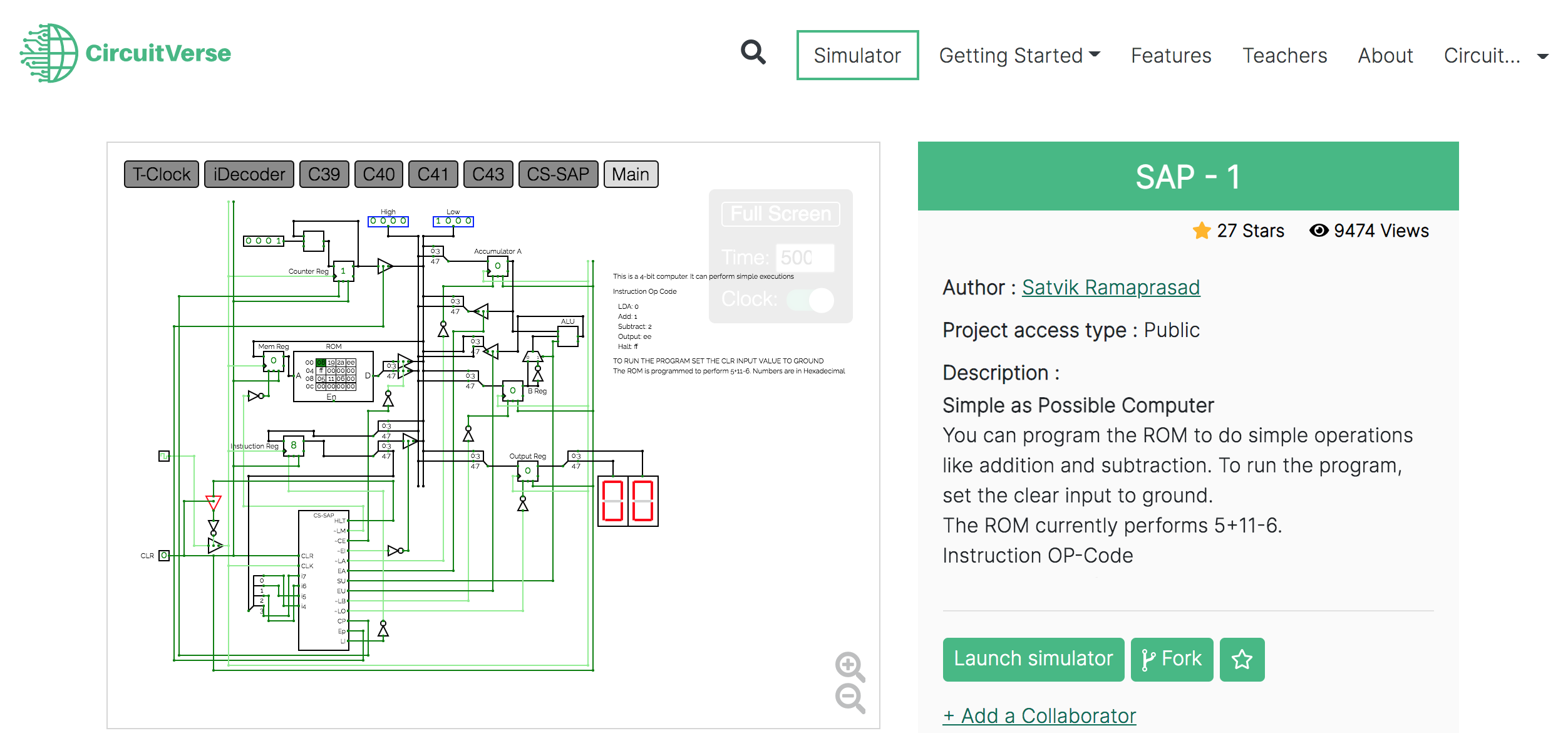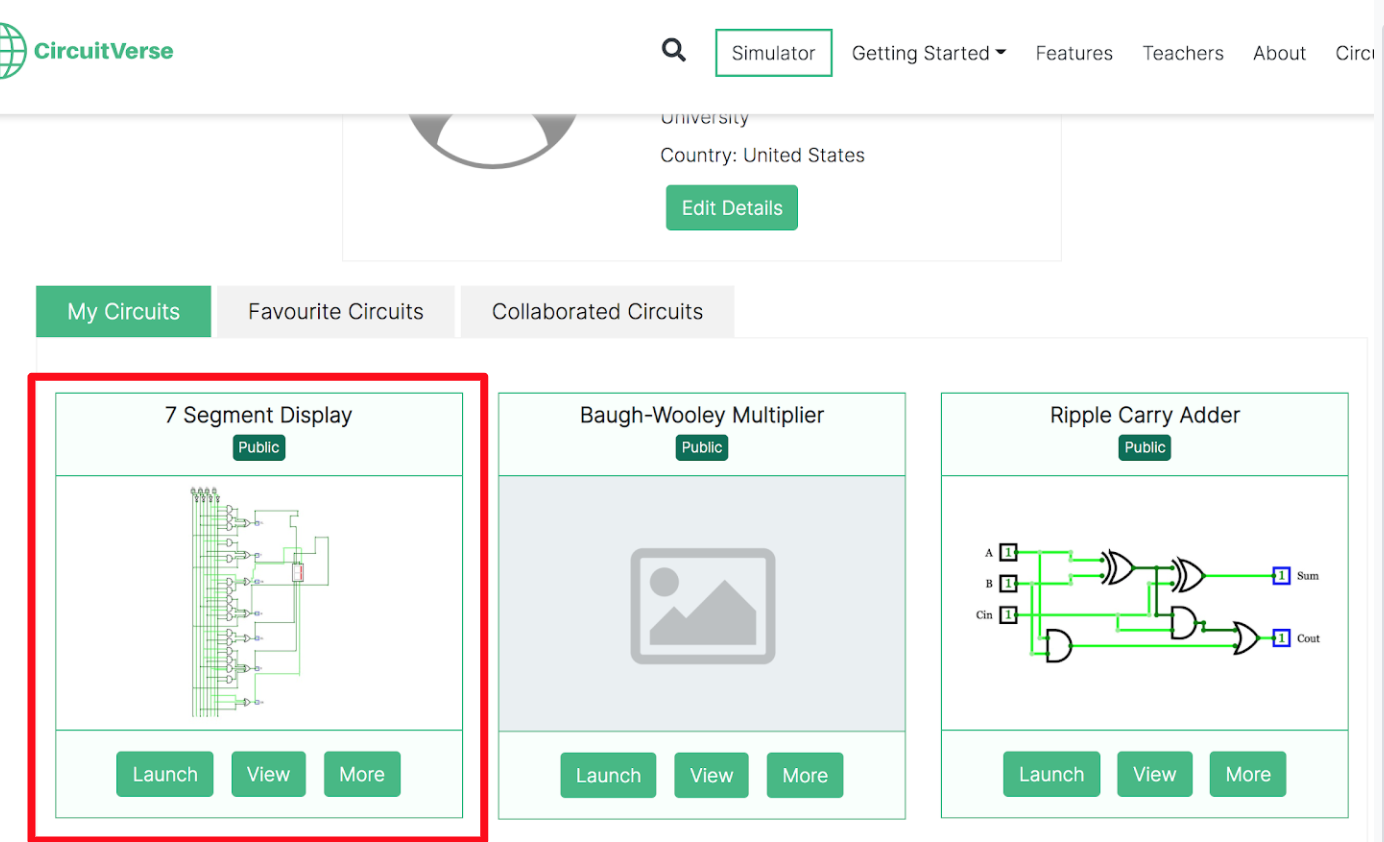Click on the Launch Simulator button to launch the circuit simulation in the CircuitVerse simulator. Refer to Figure 2.53.