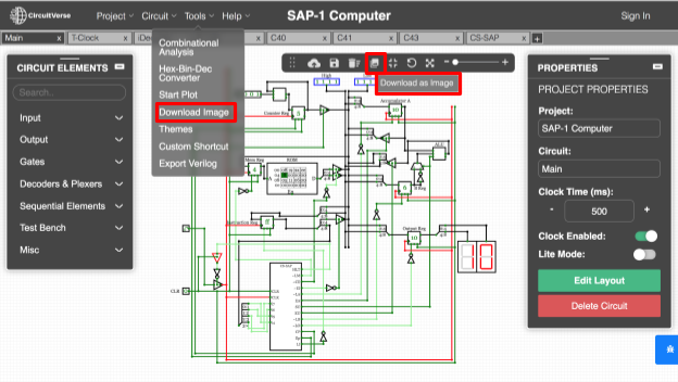 Follow the below steps to download an image from the CircuitVerse simulator: