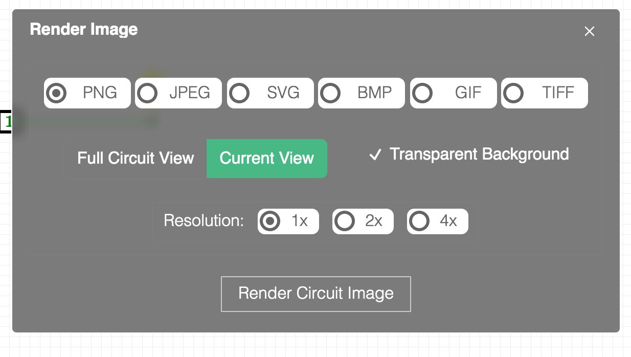 | PNG | Renders image in PNG format. This is the default setting for rendering images in CircuitVerse. |