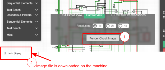 Note: This setting only works for the PNG format because only PNG supports a transparent background. A transparent background image rendered in CircuitVerse does not have a white background. |